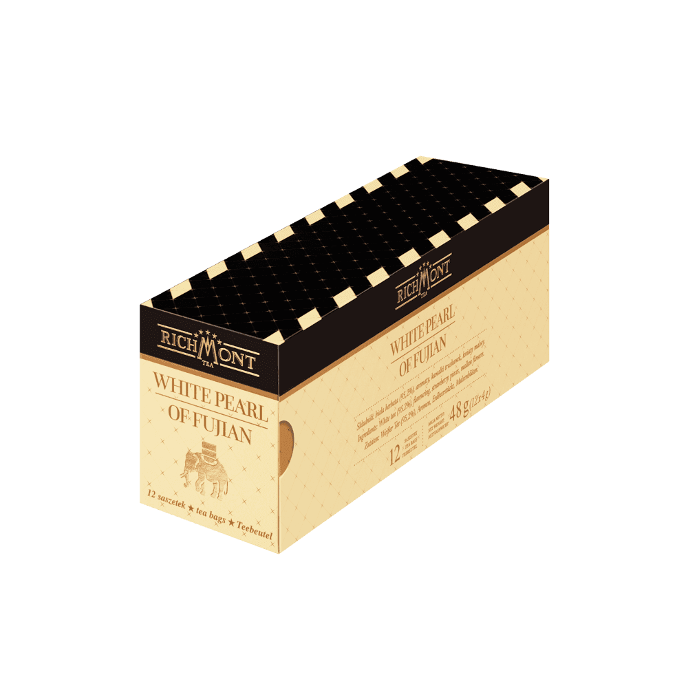 Wykwintna cesarska odmiana Pai Mu Tan o kwiatowym aromacie, znana jako Biała Piwonia z Fujian. Mieszanka na bazie znakomitej białej herbaty wzbogacona nutami truskawki i kwiatów malwy. Daje subtelny złocisty napar o zachwycającej harmonii smaków i aromatów.